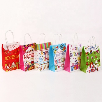 Çocuk doğum günü partileri için tam-baskılı Kraft kağıdı Goody çanta kolu giyim ayakkabı için özel logolu kağıt hediye çantası el sanatları için